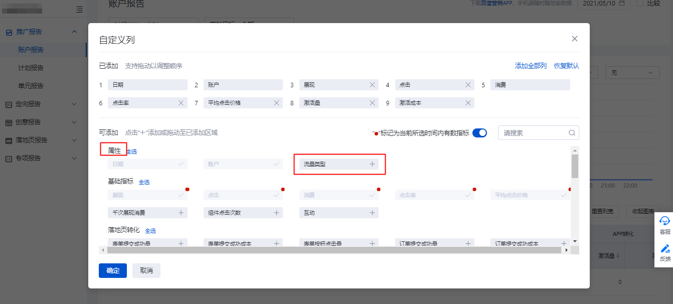 賬戶、計劃、單元報告新增“流量類型”指標-信息流推廣