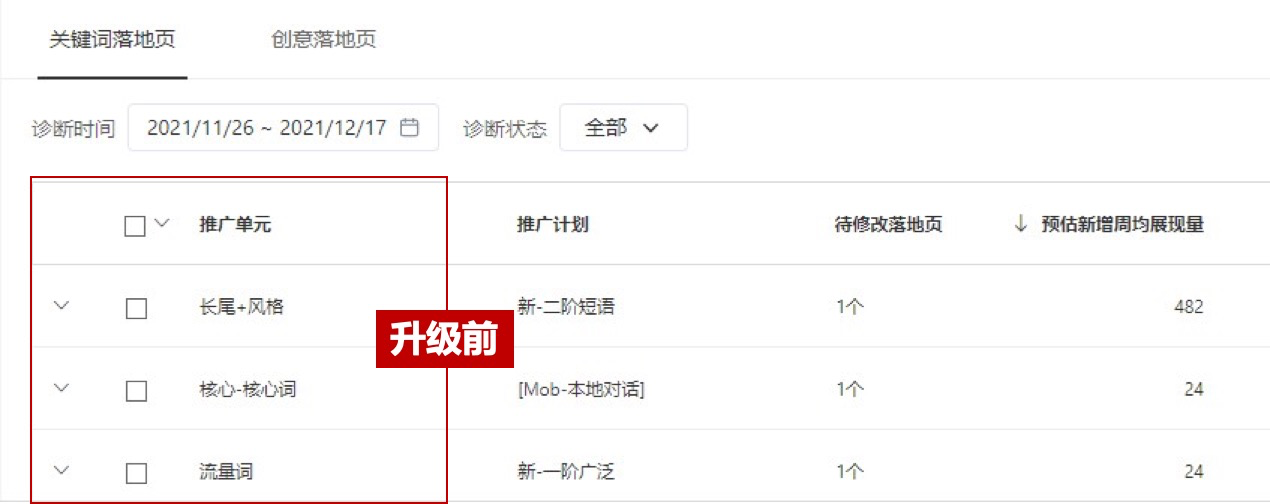 優化中心“提升落地頁質量建議”易用性升級-搜索推廣