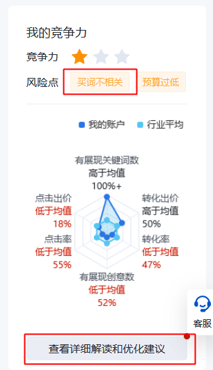 - 【我的競爭力】新增對存在少量不相關關鍵詞賬戶披露“買詞不相關”風險點預警
