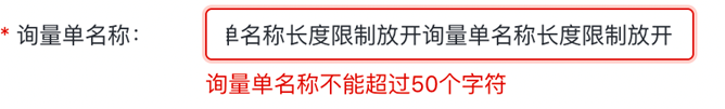 原詢量單名稱長度限制在20字符,現開放至50個漢字字符;